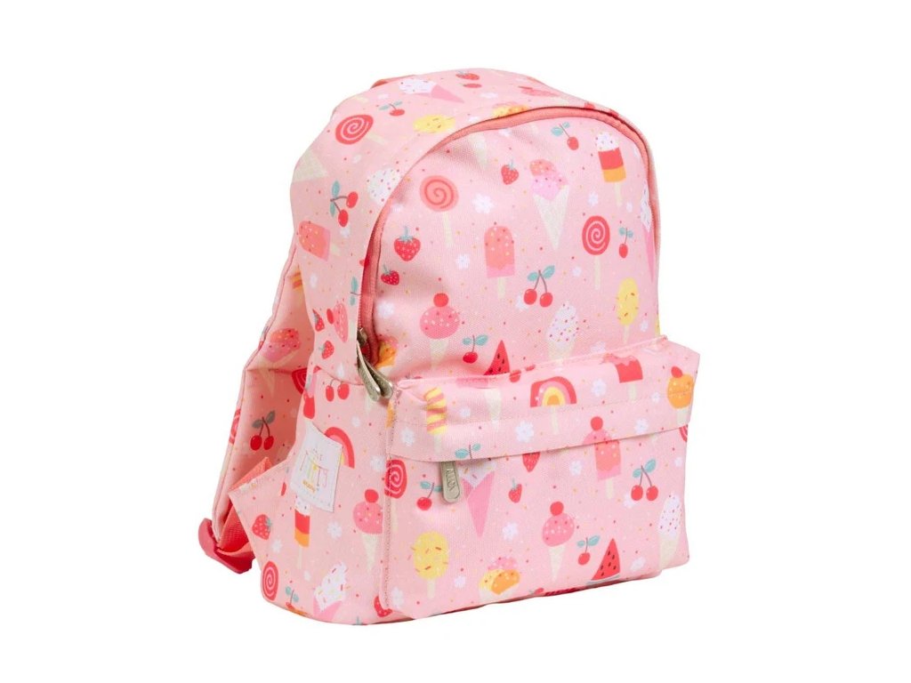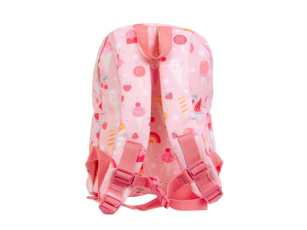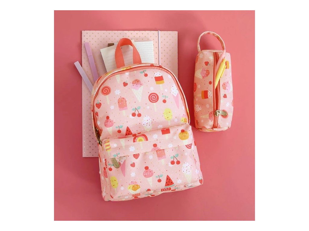 Tento rozkošný batoh s motívom zmrzliny si vaše dieťa zamiluje! 💕 Má priestrannú priehradku na všetky školské poklady, predné vrecko na zips a pohodlné ramenné popruhy s hrudným pásom, aby batoh držal na mieste aj pri hre.