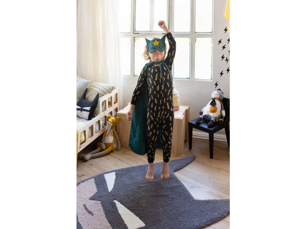 Bojujme za našu planétu! 🌱 Batboy, zahalený do tajomstva svojej čiernej masky 🦇, vás inšpiruje k záchrane Zeme. Tento prateľný vlnený koberec dodá izbe vašich detí atmosféru superhrdinského dobrodružstva 💥 alebo sa stane štýlovým doplnkom do vášho domova.